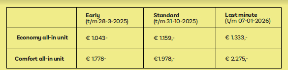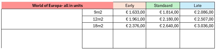 Deelnamekosten voor de Economy én Comfort uitvoering (9 m²):